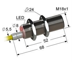 Индуктивный,М18,L-68мм,Sn 8мм,заподлицо,NPN-NC,10-30VDC,штуцер-кабель