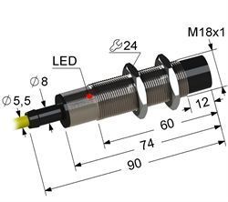 Индуктивный,М18,L-90мм,Sn8мм,не заподлицо,NC,30-250VDC/24-250VAC,штуцер-кабель