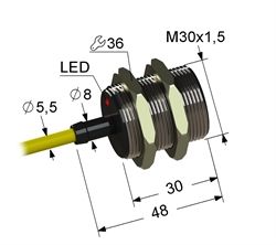 Индуктивный,М30,L-48мм,Sn 10мм,заподлицо,PNP-NC,10-30VDC,штуцер-кабель