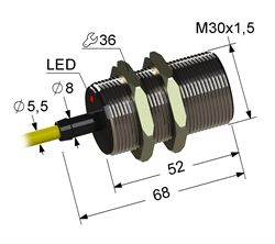 Индуктивный,М30,L-68мм,Sn 10мм,заподлицо,PNP-NC,10-30VDC,штуцер-кабель