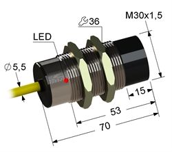 Индуктивный,М30,L-70мм,Sn15мм,не заподлицо,NC,30-250VDC/24-250VAC,кабель