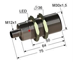 Индуктивный,М30,L-75мм,Sn 10мм,заподлицо,PNP-NO+NC,10-30VDC,разъем 4pinM12