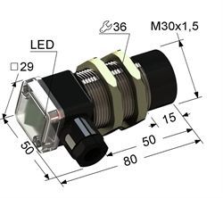 Индуктивный,М30,L-80мм,Sn 15мм,не заподлицо,NPN-NO,10-30VDC,клеммы