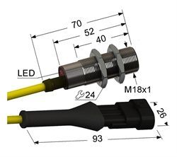 Датчик,бесконтактный,М18,L-53мм, PNP-NO,заподлицо,Sn 8мм,10-30VDC ,250мА, 650Hz