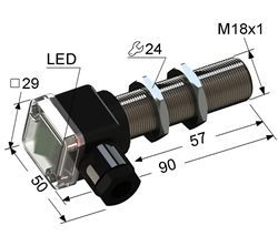 Индуктивный,выход 4-20мА,18М,L-90мм,Sn5мм,заподлицо,PNP,12-30VDC,клеммы