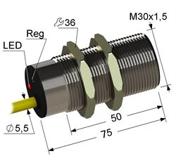 Частотный,1-50Гц,М30,L-75мм,Sn10мм,заподлицо,PNP-NO+NC,10-30VDC,кабель