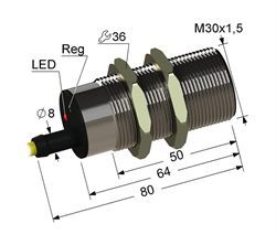 Частотный,1-50Гц,М30,L-80мм,Sn10мм,заподлицо,PNP-NC,10-30VDC,штуцер-кабель