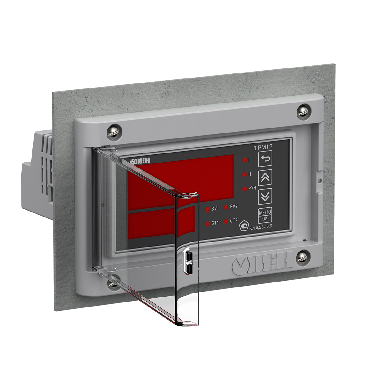 Конструкция рамки содержит прозрачную дверцу, которая может открываться на угол до 100 градусов и фиксироваться в открытом положении. Прозрачная дверца осуществляет дополнительную защиту приборов от внешних механических воздействий, значительно увеличивает срок службы гибко-пленочной клавиатуры прибора. В конструкции рамки имеются встроенные крепежи для установки прибора.