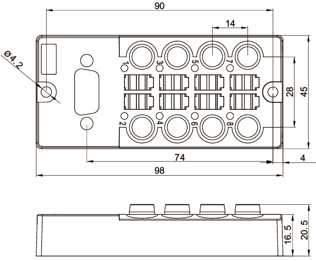 | Разъемы на коробке | M8 |