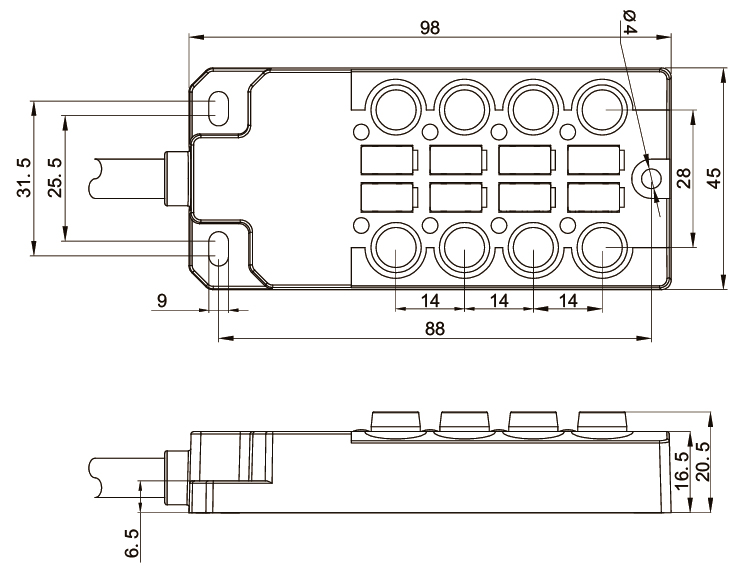 | Размер прямоугольного корпуса, мм | 98x45x20,5 |