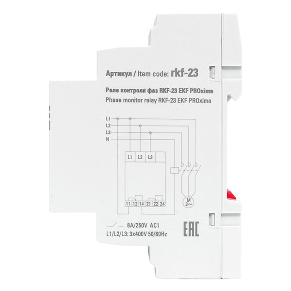 Многофункциональное реле контроля фаз RKF-23 EKF является устройством, созданным на базе микроконтроллера. Реле применяется в системах автоматизации и предназначено для высокоточного контроля качества питания трехфазной сети. 230/400 вольт переменного тока Реле контролирует следующие параметры: