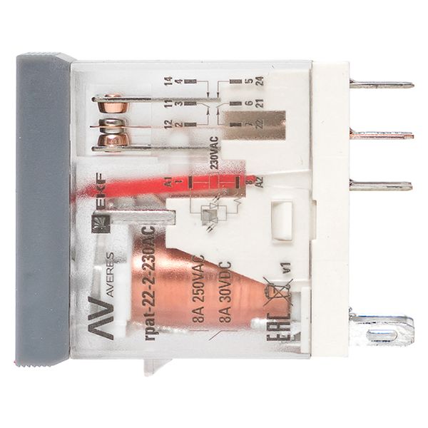 Реле промежуточное с кнопкой и мех. индикацией RPAt 22/2 8A 230В AC EKF AVERES