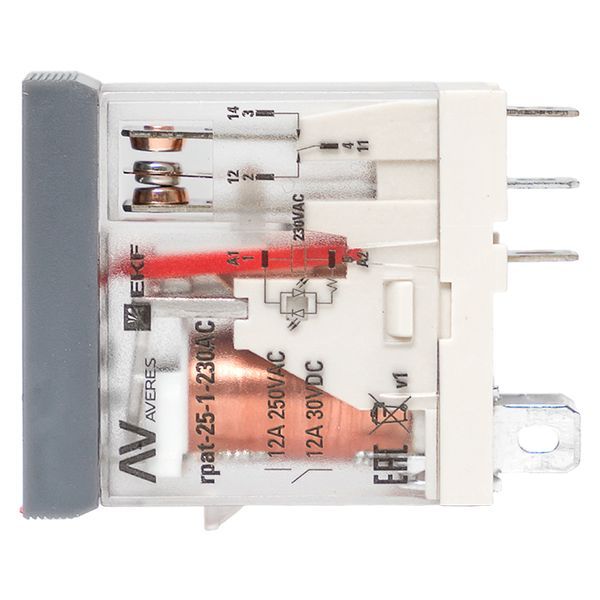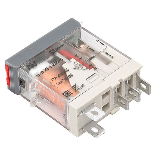 Реле промежуточное с кнопкой и мех. Индикацией RPAt 25/1 12A 230В AC EKF AVERES
