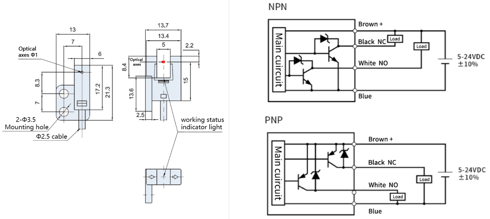 | Напряжение питания, В | 5-30 DC |