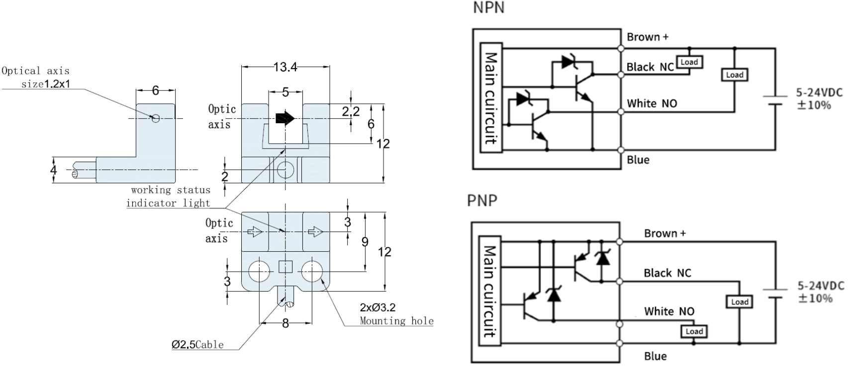 | Размер прямоугольного корпуса, мм | 12x13,4x12 |