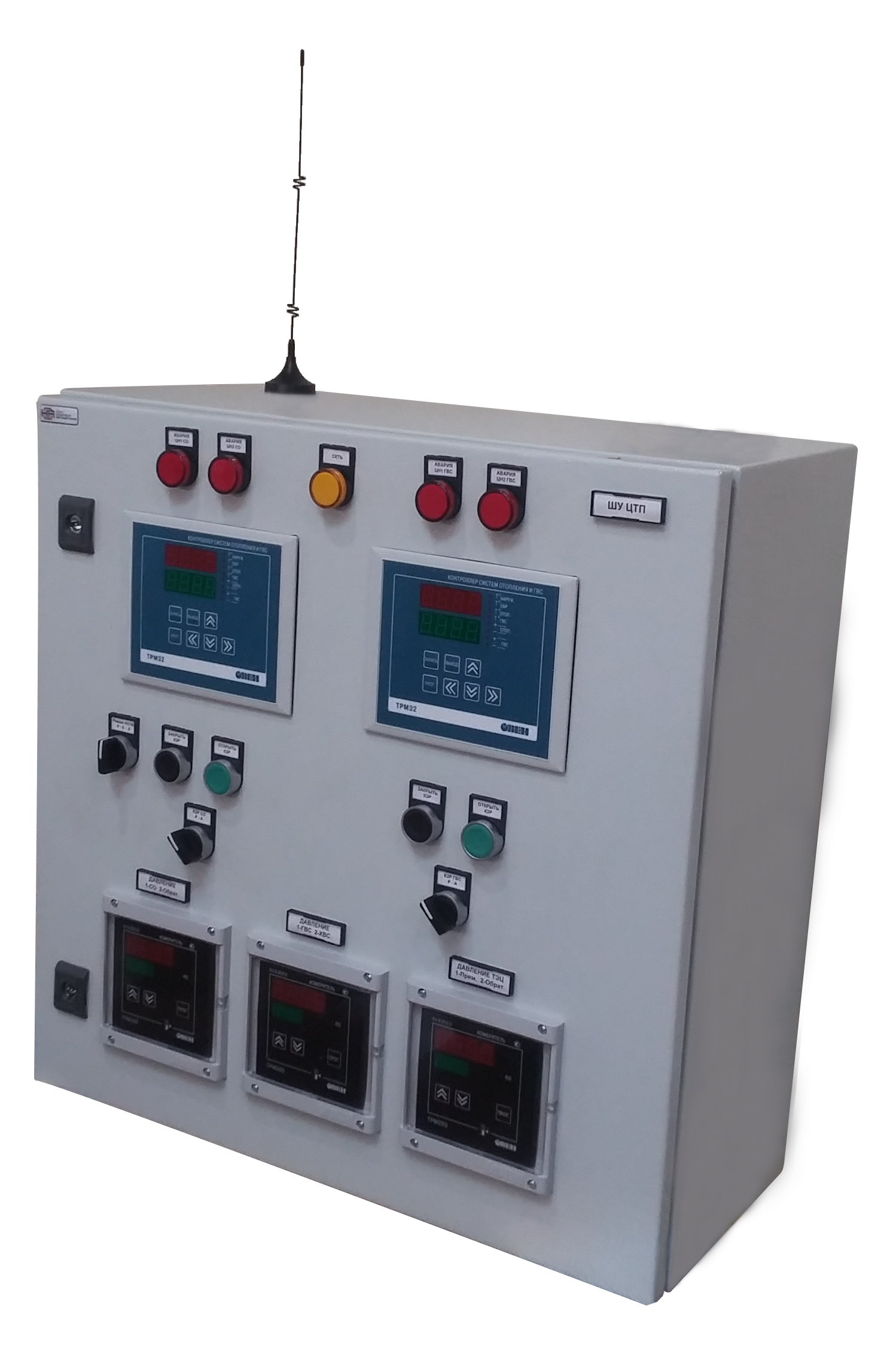 Шкаф управления центрального теплового пункта на базе контроллера ТРМ32 (ШУ ЦТП-32) предназначен для контроля и регулирования температуры в системе отопления и ГВС, защиты от превышения температуры обратной воды.