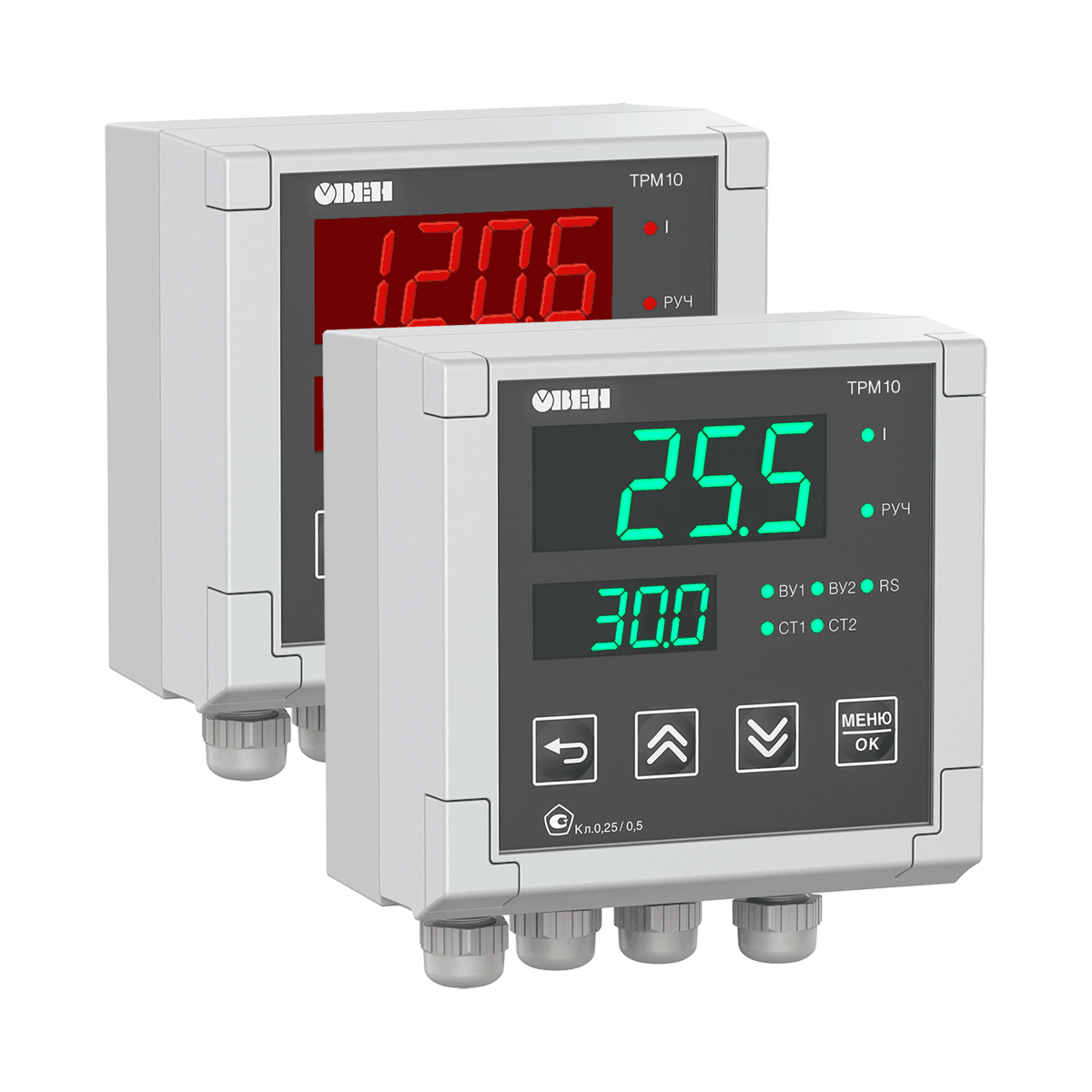 ТРМ10 – это ПИД-регулятор температуры, давления, уровня, влажности, концентрации вещества, расхода или других физических величин в различных технологических процессах. Главная особенность ТРМ10 – это алгоритм ПИД-регулятора, предназначенный для точного поддержания заданных параметров до ±0,2 ˚С методом ШИМ-регулирования или плавного изменения унифицированного выходного сигнала. Наличие сетевого интерфейса RS-485 позволяет производить удаленную настройку и управление прибором.