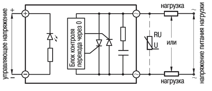 • Встроенная RC-цепочка, шунтирующая выход, повышает надежность работы ТТР в условиях импульсных помех, особенно при коммутации индуктивной нагрузки.