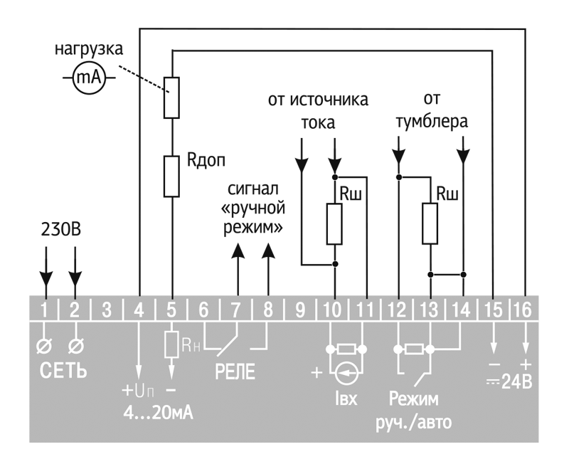 - Указание режима работы «автомат/ручной» по контактам э/м реле