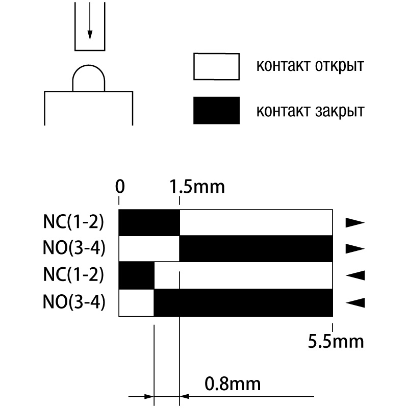 - Коммутация 2-х цепей ( двухполюсный контакт НО + НЗ ).