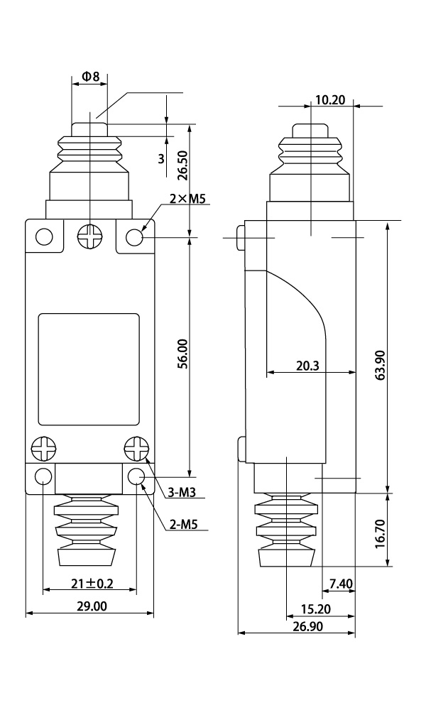 Концевые выключатели MTB4-LZ8111 предназначены для коммутации электрических цепей управления, сигнализации и контроля положения подвижных частей механизмов под воздействием управляющих упоров в определенных точках пути контролируемого объекта. Элемент управления нажимная стальная кнопка, материал корпуса металл (сплав алюминия) с пластиковой (PC, PBT) крышкой, электрическое подключение винтовые клеммы с сечением до 2 мм2, боковой монтаж.